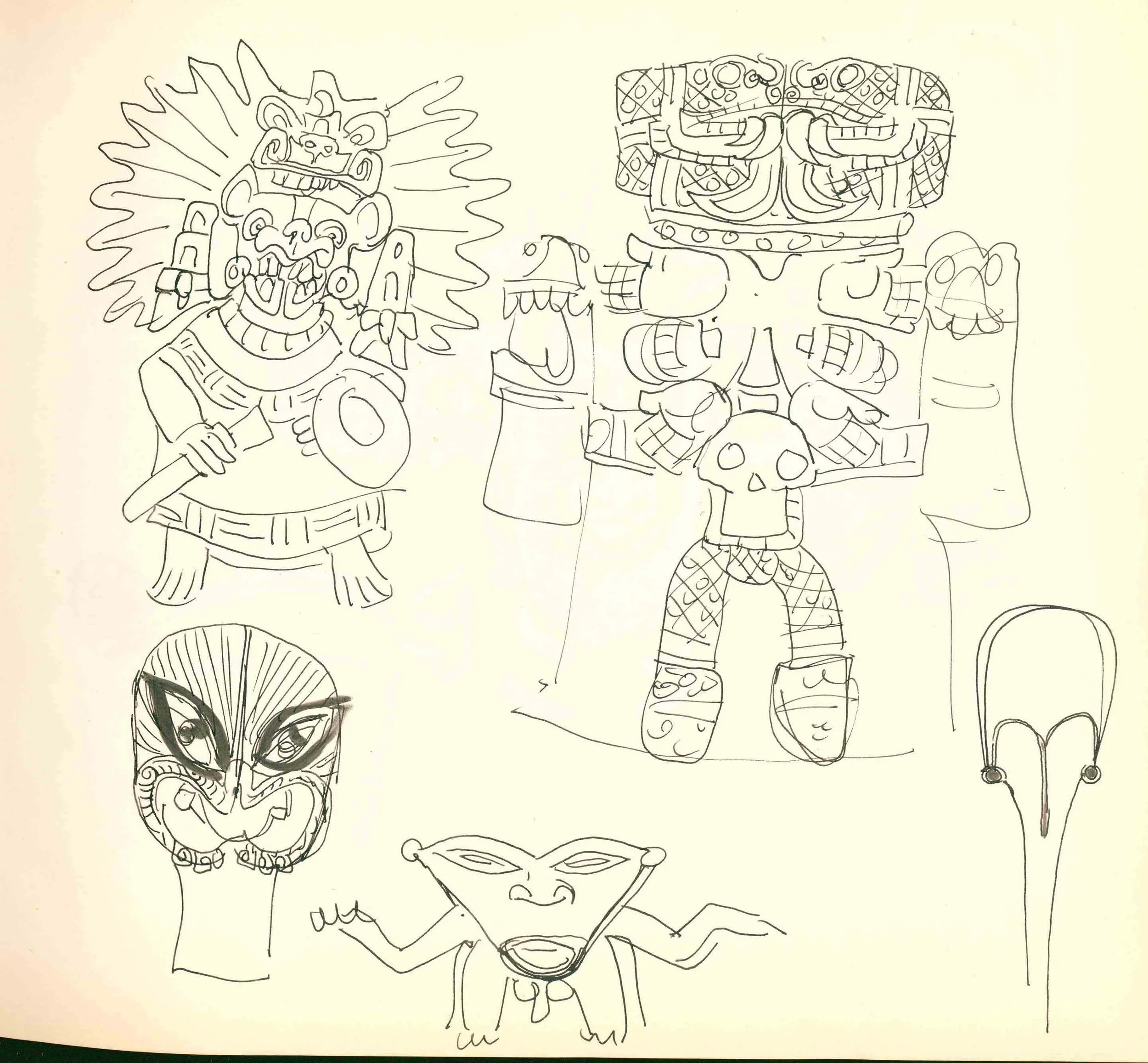 《原始艺术造型研究》,纸本钢笔,26.5 x 24 cm,1992年