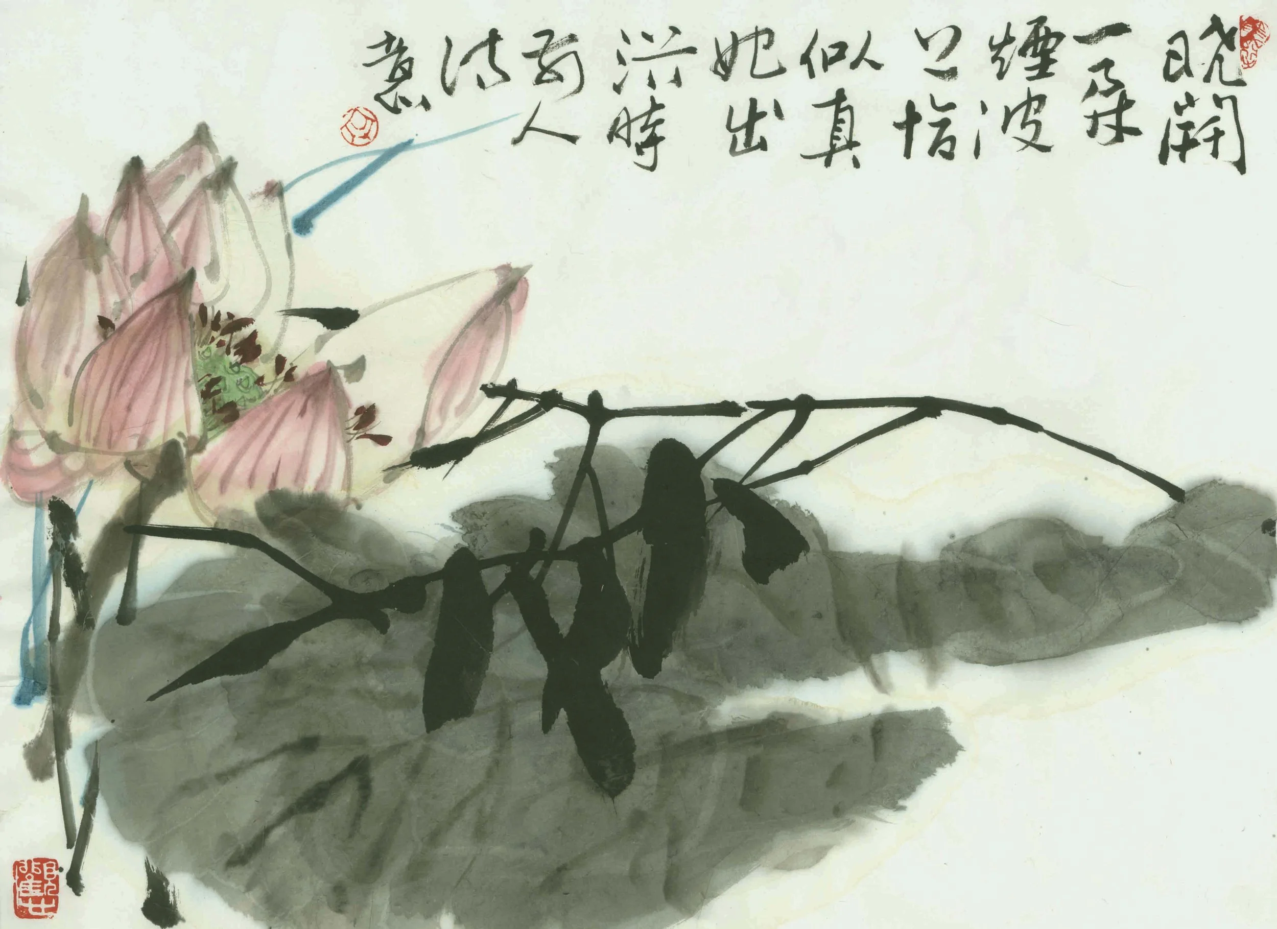 《门外野风开白莲》,纸本水墨设色,44.5 x 34 cm,2005年