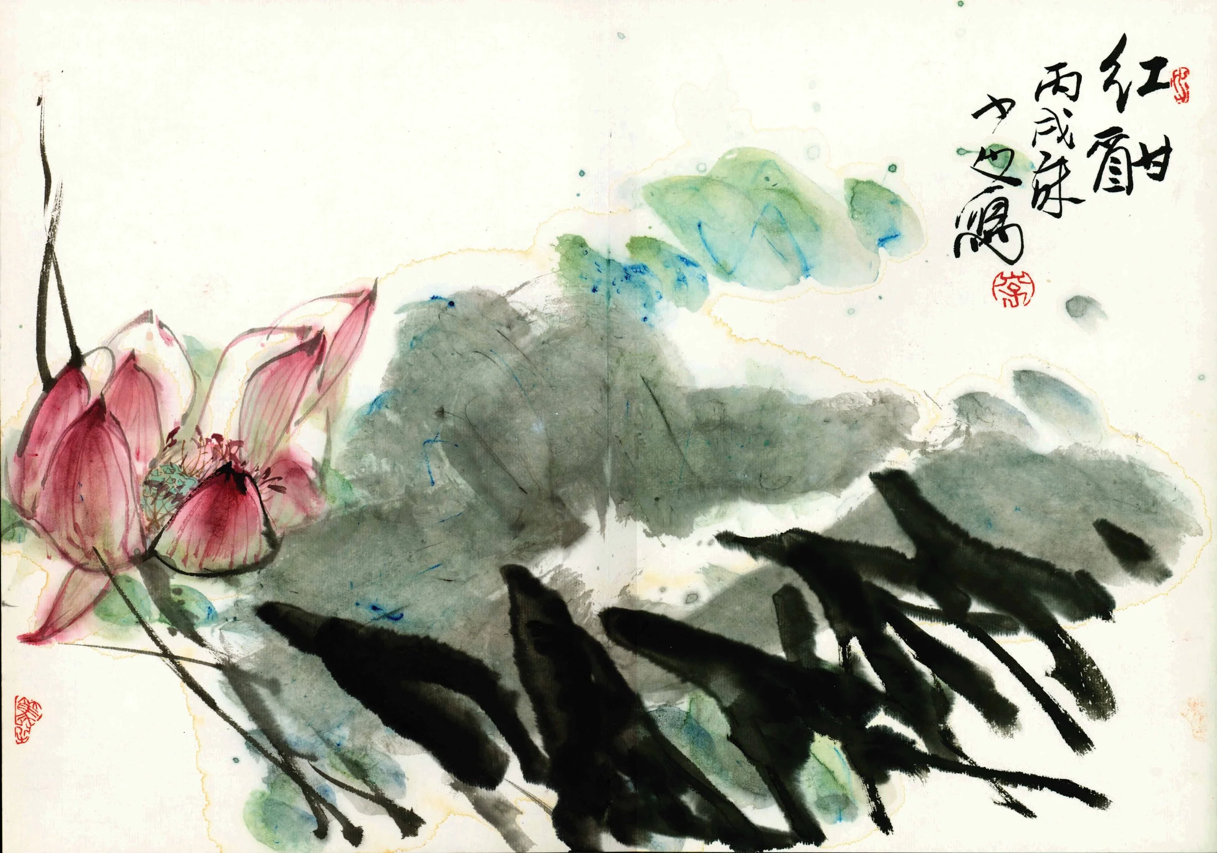 《湖莲》,纸本水墨设色,46.5 x 35.17 cm,2004年