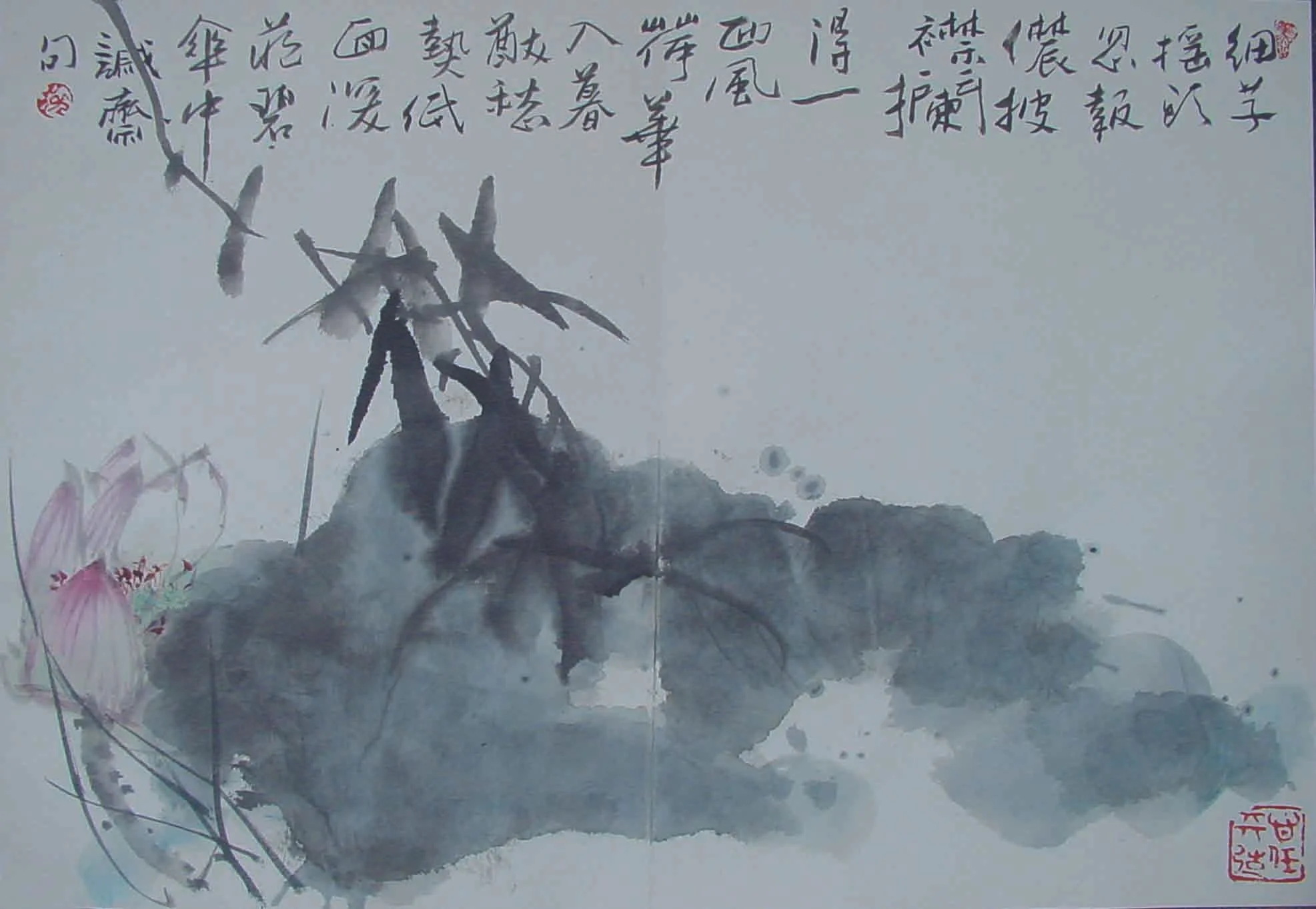 《门外野风开白莲》,纸本水墨设色,44.5 x 34 cm,2005年 View fullsize