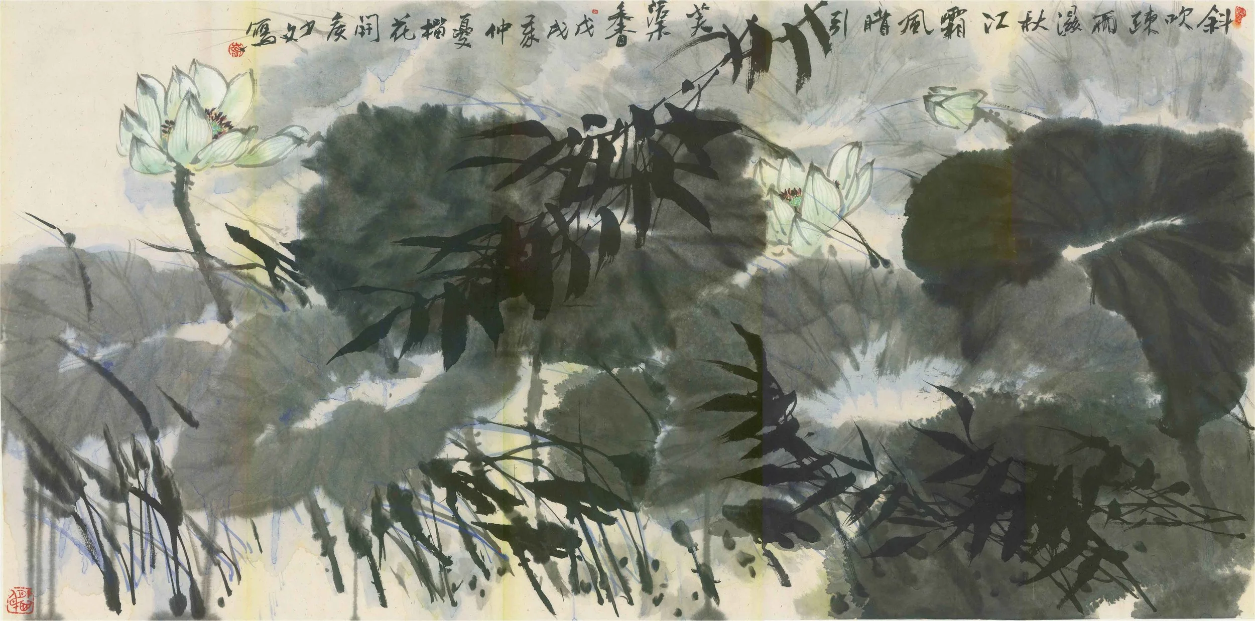 《秋荷》,纸本水墨设色,66 x 48 cm,1994年