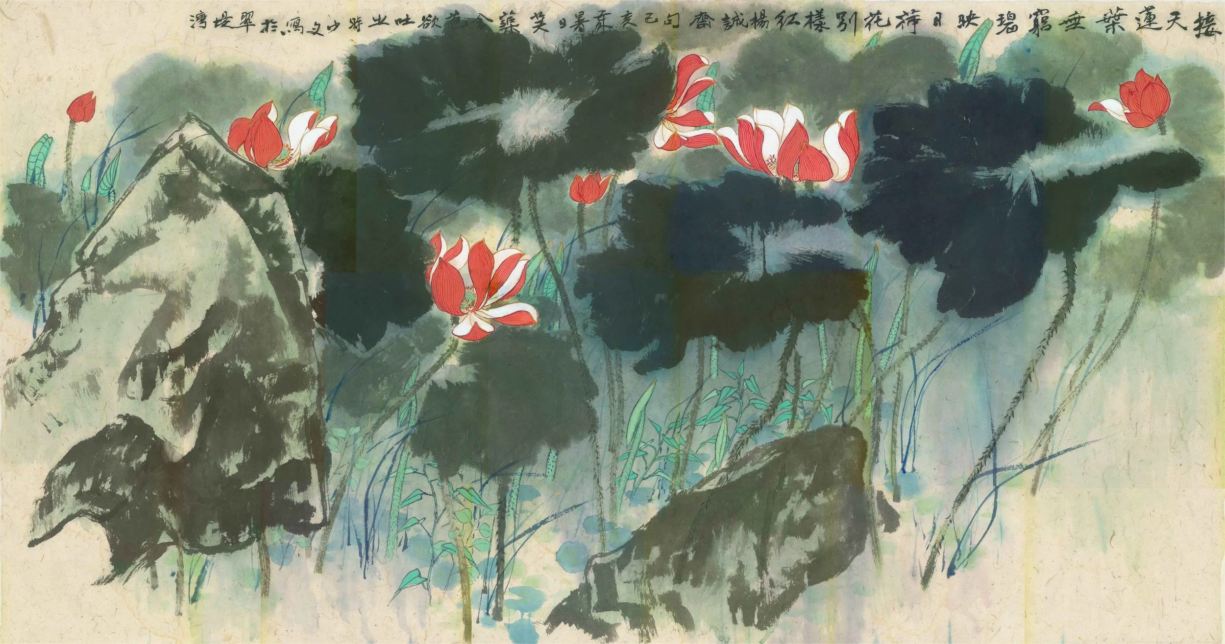 《映日荷花别样红》,纸本水墨设色,尺寸不详,2019年 View fullsize